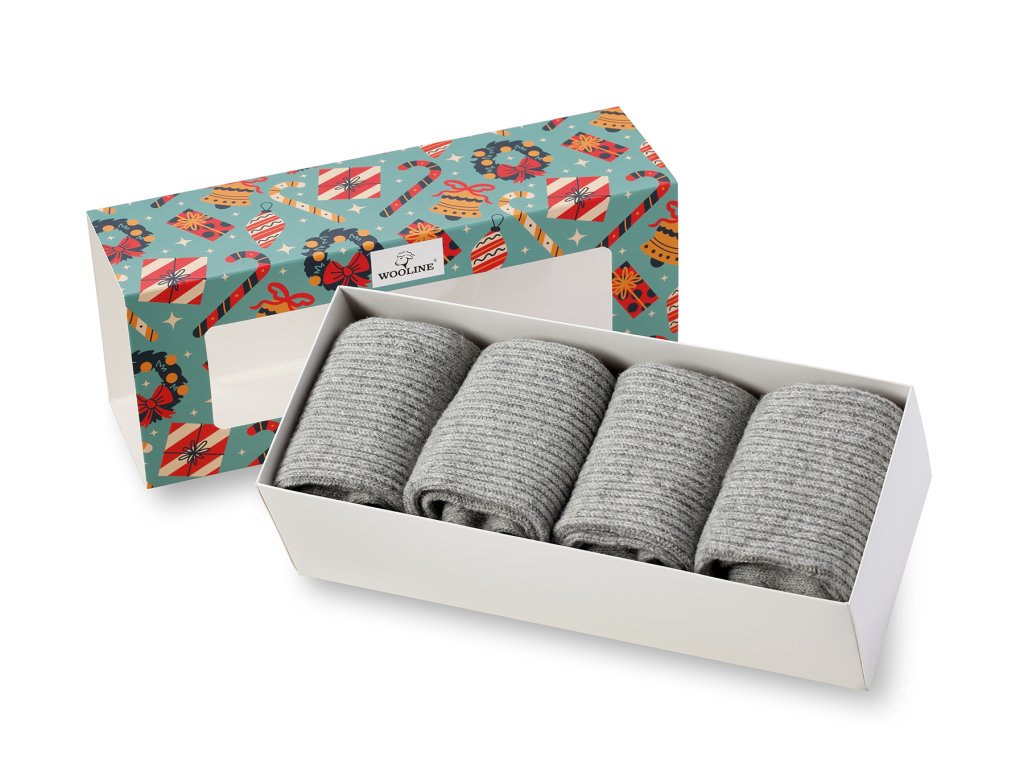 Udělejte radost svým blízkým dárkovým balením zdravotních ponožek Merino Natural Wool v šedé barvě. Dárková krabička obsahuje 4 páry ponožek dané velikosti.