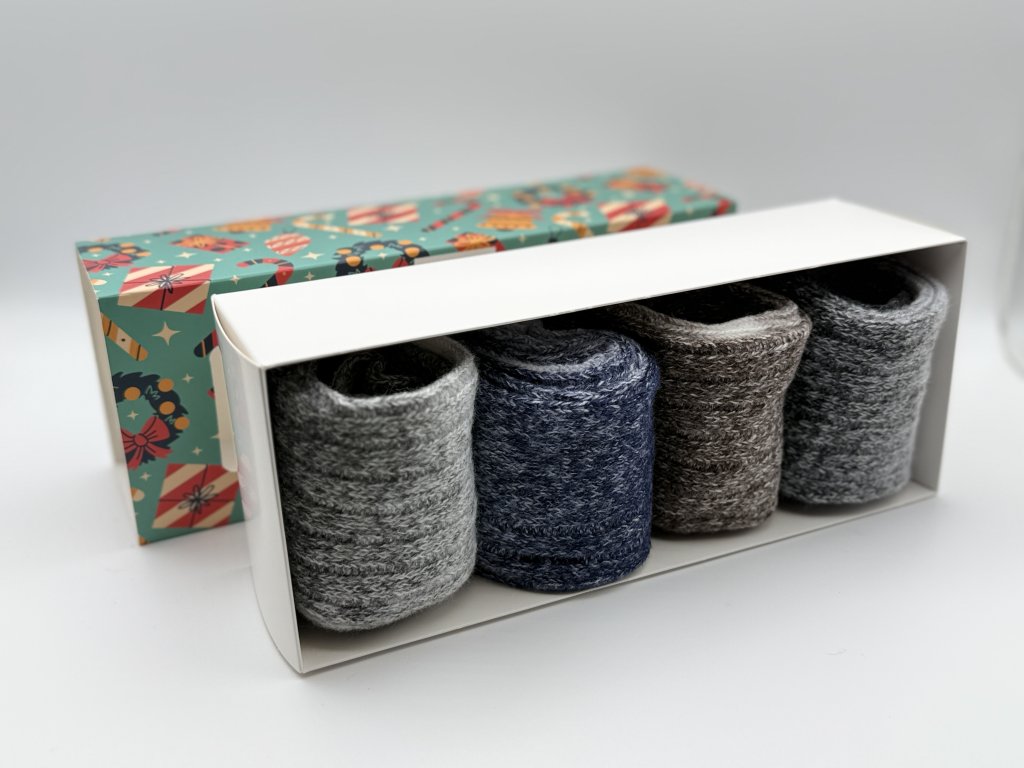 Cenově výhodná dárková sada hřejivých jemných merino ponožek v zajímavém pestrobarevném designu. Dárkové balení vlněných ponožek obsahuje 4 páry ponožek v dané velikosti. Ponožky mají volný lem, neškrtí nohu při používání. Vlněné ponožky jsou vhodné jak na domácí nošení, tak na tůry.