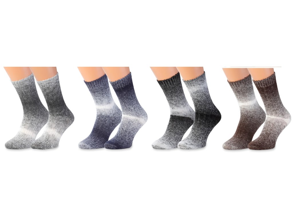 Ponožky jsou vyrobeny z velice jemné a hebké vlny. Sada ponožek z vlny obsahuje 4 páry ponožek v různých motivech. Díky použitému materiálu se ponožka přizpůsobí velikosti chodidla.
