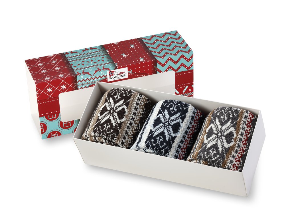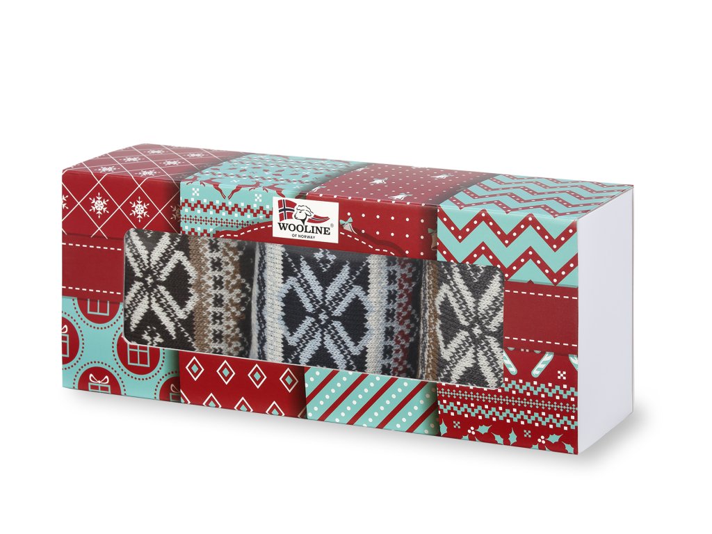 Dárkové balení pánských ponožek s norskými motivy. To jsou ponožky Natural Wooline Wool pro muže. Dárkové balení obsahuje 3 páry vlněných ponožek. Ponožky jsou vhodné primárně na používání v chladnějších obdobích roku, a to od podzimu do jara.