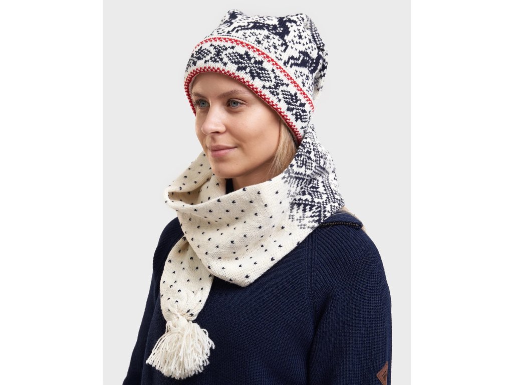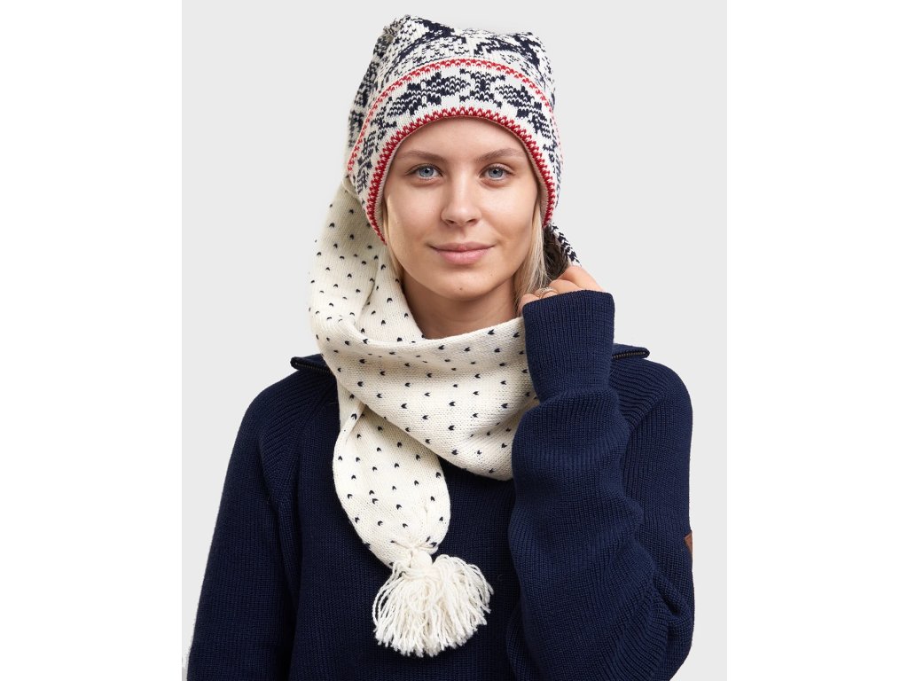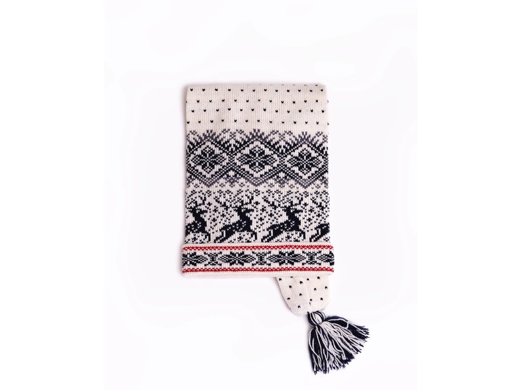 Hřejivá, elegantní a hlavně praktická čepice se šálou z hebké ovčí vlny. To je tradiční severská pokrývka hlavy, která primárně slouží jako čepice a současně šlouží jako šála. Tato měkká a hebká dlouhá zimní čepice je vyrobena ze 100% vlny, jejíž kvalita je léty prověřena. Dlouhá zimní vlněná čepice je opatřena zdobným severským motivem sobů. Čepice se šálou je strojově pletená.