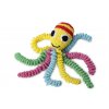 Materiál: 100% měkká vlna, vyplněno dutým vláknem; Barva: žluto-červená hlavička; zelená, žlutá, růžová, modrá chapadla, Rozměry: výška hlavičky 8 cm, délka chapadel 11 cm, celková šířka po roztažení chapadel 25 cm