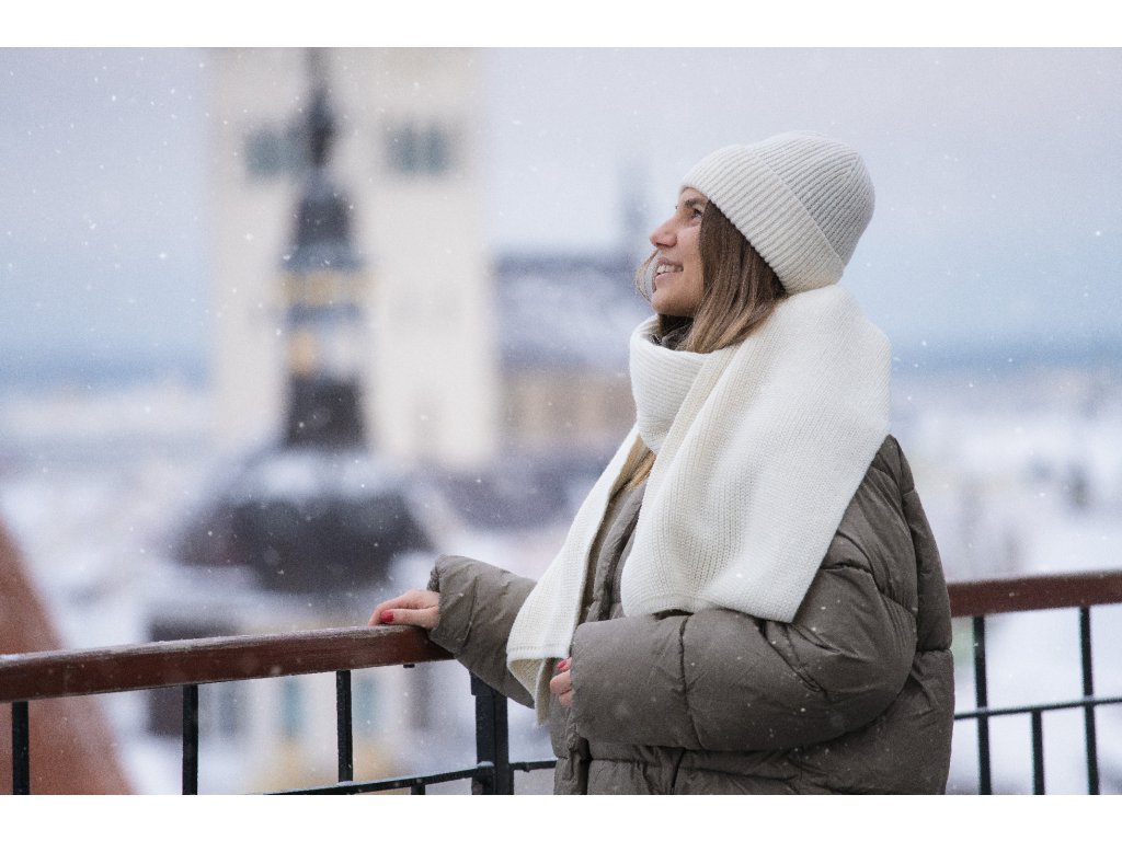 Hřejivá, praktická a univerzální zimní čepice Jaan vyrobená z hebké jehněčí vlny v bílé barvě. Zimní čepice je strojově pletená. Nošení této čepice je velice komfortní. Praktický dvojitý lem zajistí příjemné teplo v problematických partiích hlavy zejména v zimním období. Úplet je vyroben z hebké jehněčí vlny, která je velice jemná a hřejivá na dotyk.