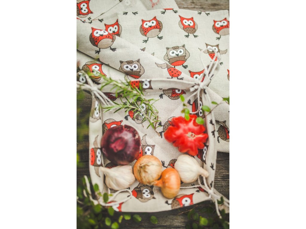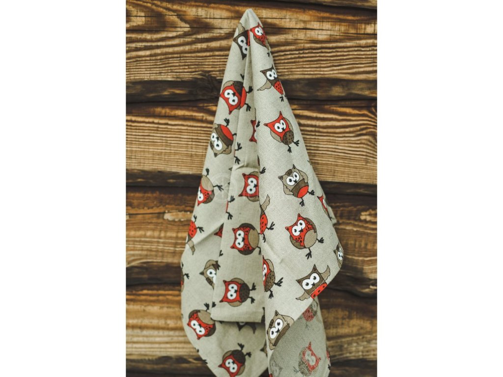 Kuchyňskou utěrku s motivem soviček lze sladit s dalšími kuchyňskými doplňky z naší nabídky jako jsou chňapky, kuchyňské zástěry nebo lněné tašky na nákup.