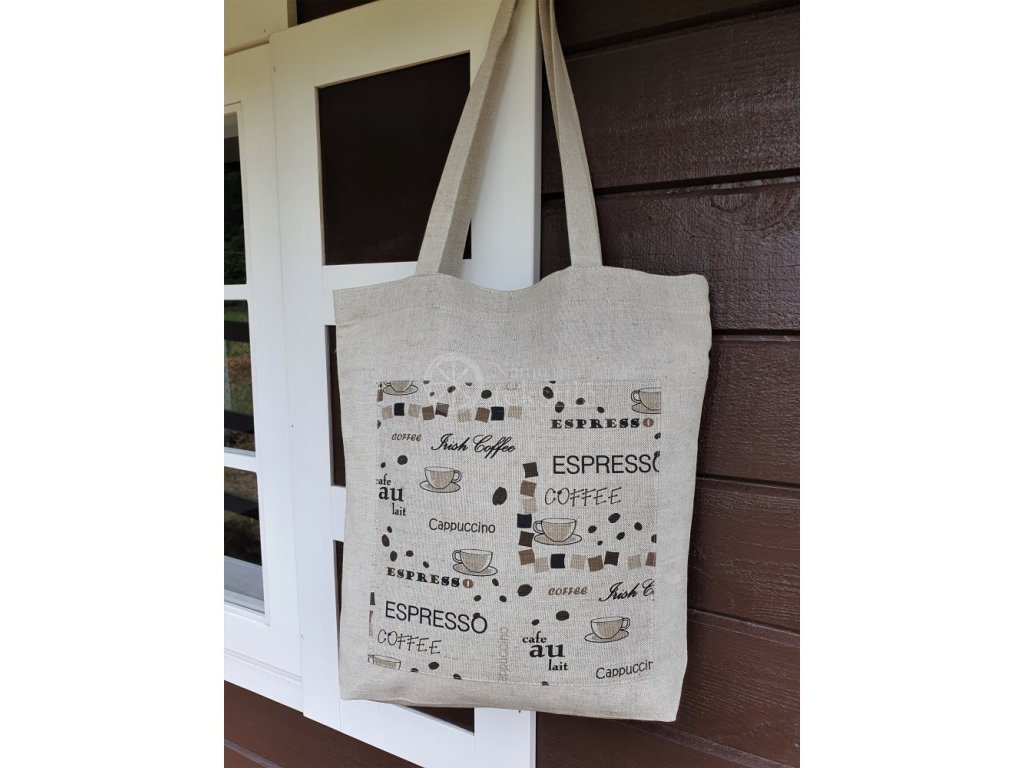Lněná nákupní taška, motiv Káva