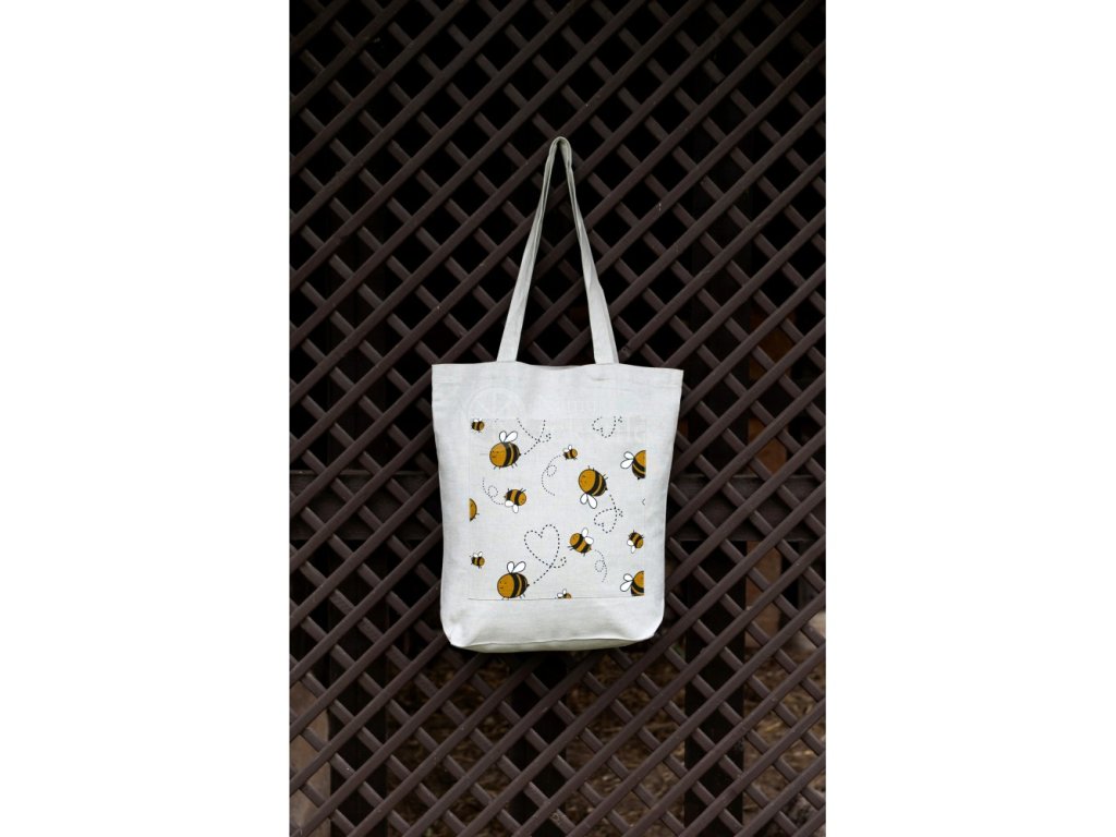 Lněná nákupní taška, motiv Včely