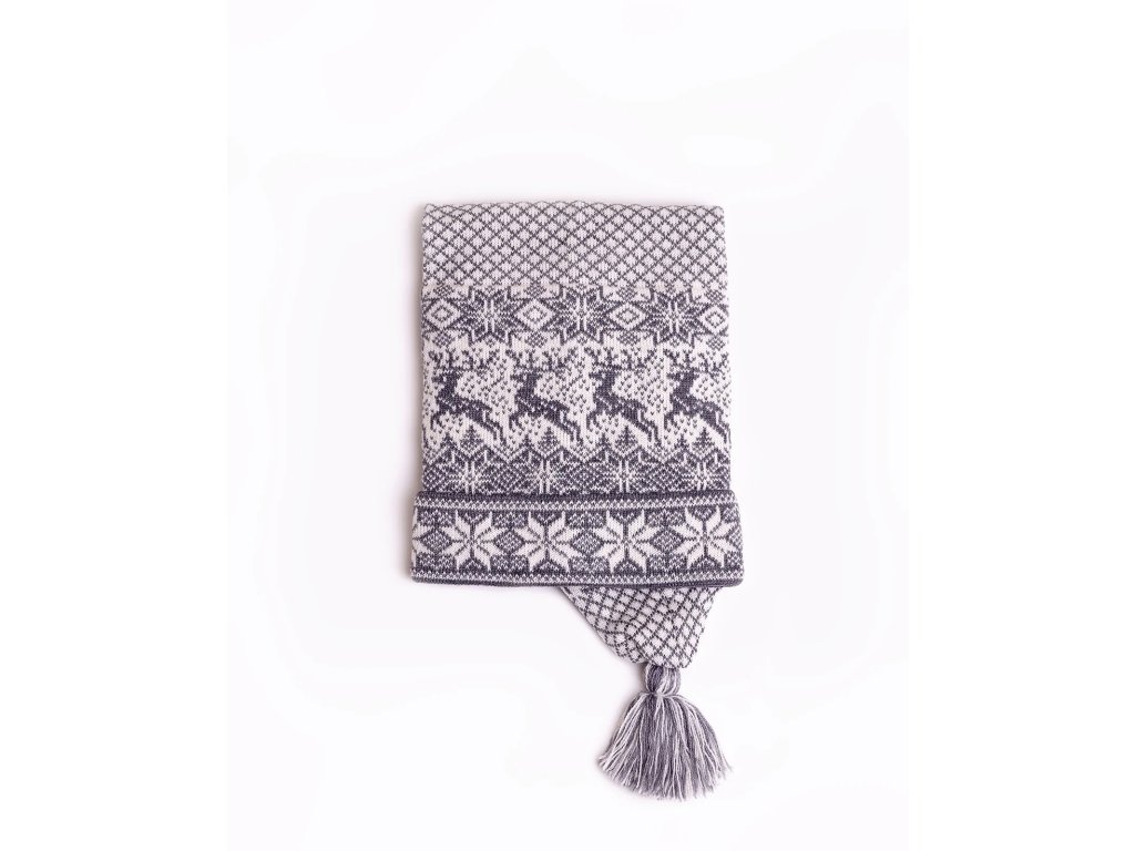 Hřejivá, elegantní a hlavně praktická čepice se šálou z hebké jehněčí vlny a polyakrylu. To je tradiční severská pokrývka hlavy, která primárně slouží jako čepice a současně šlouží jako šála. Tato měkká a hebká dlouhá zimní čepice je vyrobena ze 70% jehněčí vlny a 30% Polyakrylu. Dlouhá zimní vlněná čepice je opatřena zdobným severským motivem sobů. Čepice se šálou je strojově pletená.