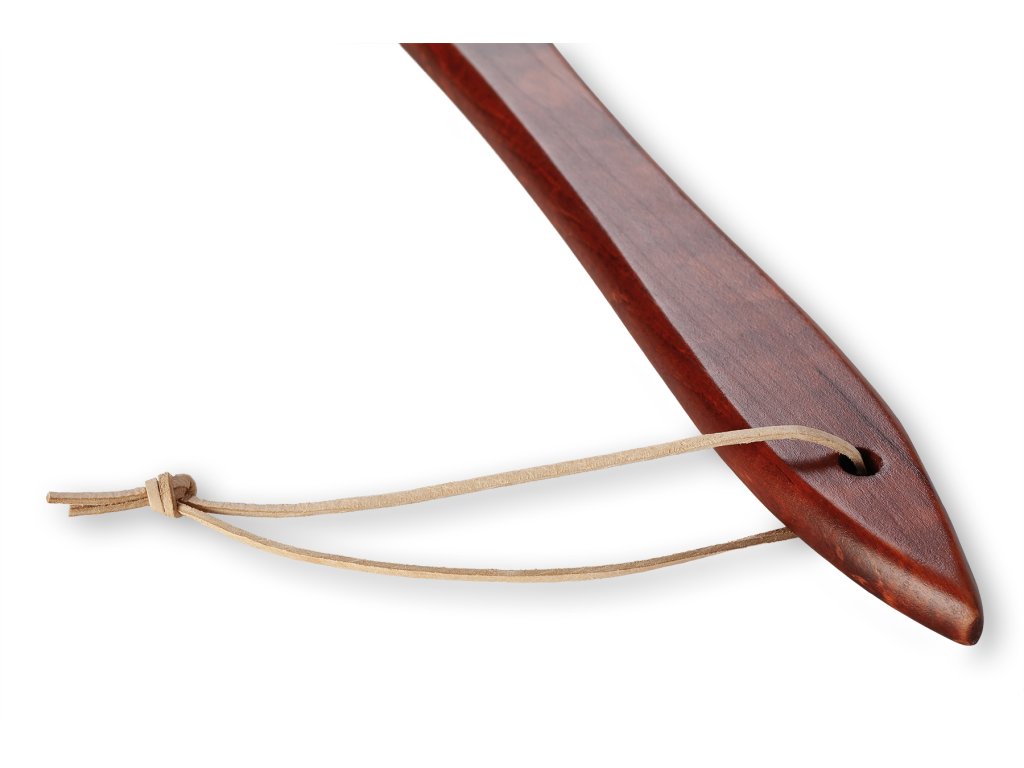 Materiál: dřevo, Barva: mahagon, Možnost pověšení: ANO - opatřeno koženým poutkem; Délka lžíce: 74 cm; Lakovaný povrch: ANO