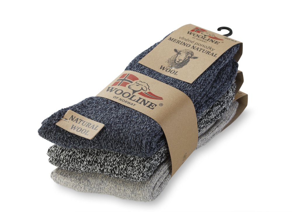 Sada hřejivých vlněných ponožek Merino Natural Wool z velice jemné a hebké vlny. Sada hřejivých vlněných ponožek obsahuje 3 páry ponožek v různých barvách. Barevné motivy odpovídají motivům na zobrazeném obrázku. Díky použitému materiálu se ponožka přizpůsobí velikosti chodidla.