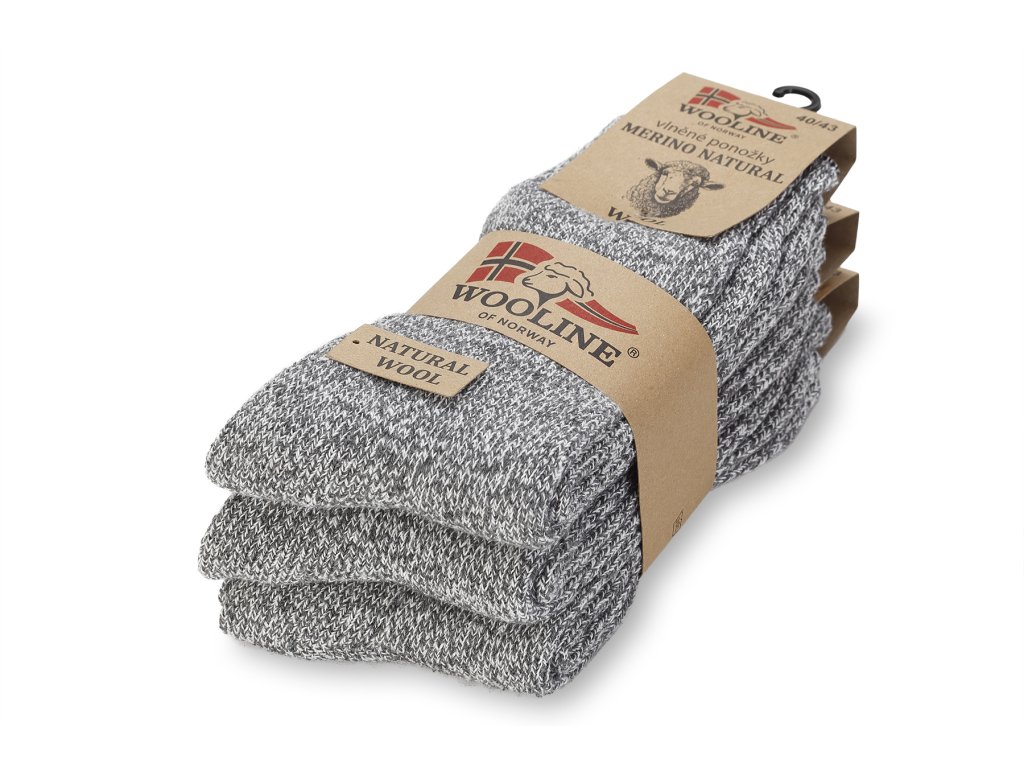 Sada hřejivých vlněných ponožek Merino Natural Wool z velice jemné a hebké vlny. Ponožky jsou na dotyk hebké a jemné. Sada hřejivých vlněných ponožek obsahuje 3 páry ponožek ve světle šedé barvě. Díky použitému materiálu se ponožka přizpůsobí velikosti chodidla.