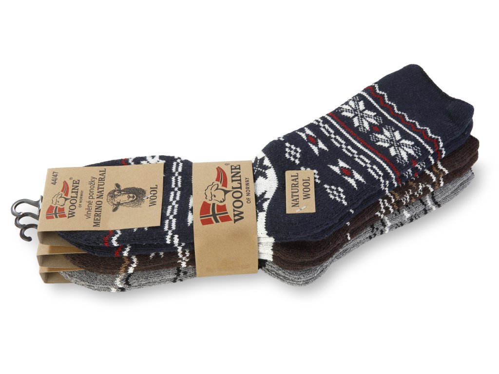 Sada hřejivých vlněných ponožek Natural Wooline Wool z velice jemné a hebké vlny. Sada vlněných ponožek obsahuje 3 páry ponožek v různých motivech. Motivy odpovídají motivům na obrázcích. Díky použitému materiálu se ponožka přizpůsobí velikosti chodidla.