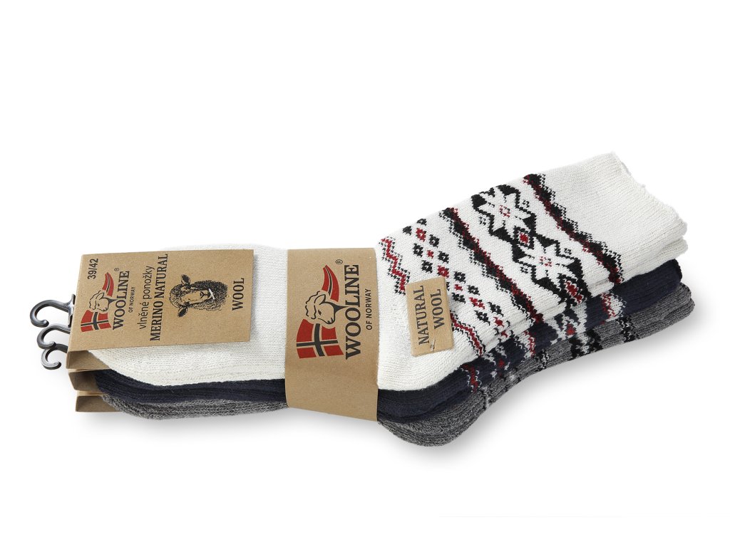 Sada pestrobarevných hřejivých vlněných ponožek Natural Wooline Wool z velice jemné a hebké vlny. Sada vlněných ponožek obsahuje 3 páry ponožek v různých motivech. Motivy odpovídají motivům na obrázcích. Díky použitému materiálu se ponožka přizpůsobí velikosti chodidla.