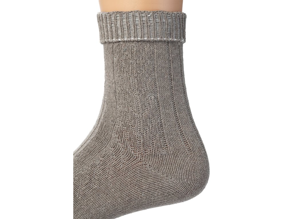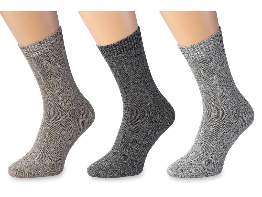 Sada tradičních dámských ponožek s vyplétaným vzorem. Sada vlněných ponožek obsahuje 3 páry ponožek v dané velikosti v různých barvách. Ponožky mají volný lem, neškrtí nohu při používání.