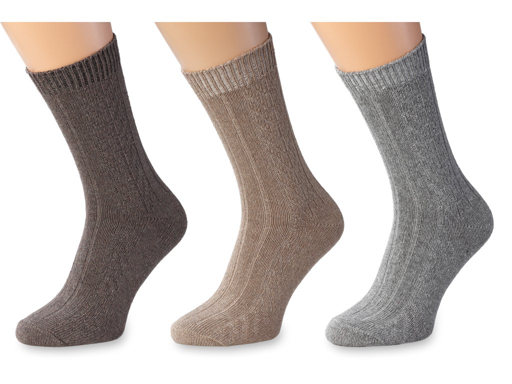 Sada tradičních pánských ponožek s vyplétaným vzorem. Sada vlněných ponožek obsahuje 3 páry ponožek v dané velikosti v různých barvách. Ponožky mají volný lem, neškrtí nohu při používání. Ponožky je možné používat celoročně.