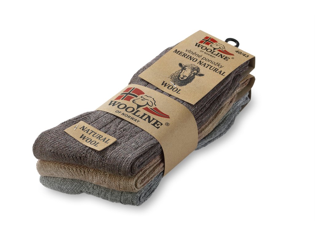 Ponožky jsou vyrobeny z velice jemné a hebké vlny. Sada ponožek z vlny obsahuje 3 páry ponožek, každý pár má jiný barevný odstín. Díky použitému materiálu se ponožka přizpůsobí velikosti chodidla.