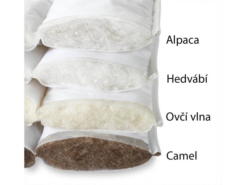 Použití: přikrývka i polštář jsou vhodné pro celoroční používání. Vhodné do místností s teplotou cca 17–22 °C.