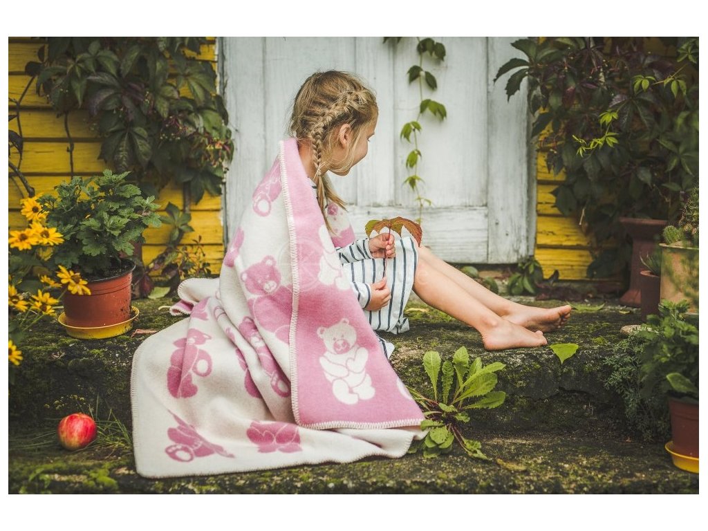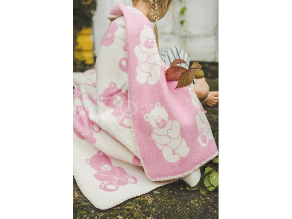 Vlněná deka pro děti s motivem medvídka, růžová HEBOUNKÁ NOVINKA PRO TY NEJMENŠÍ!