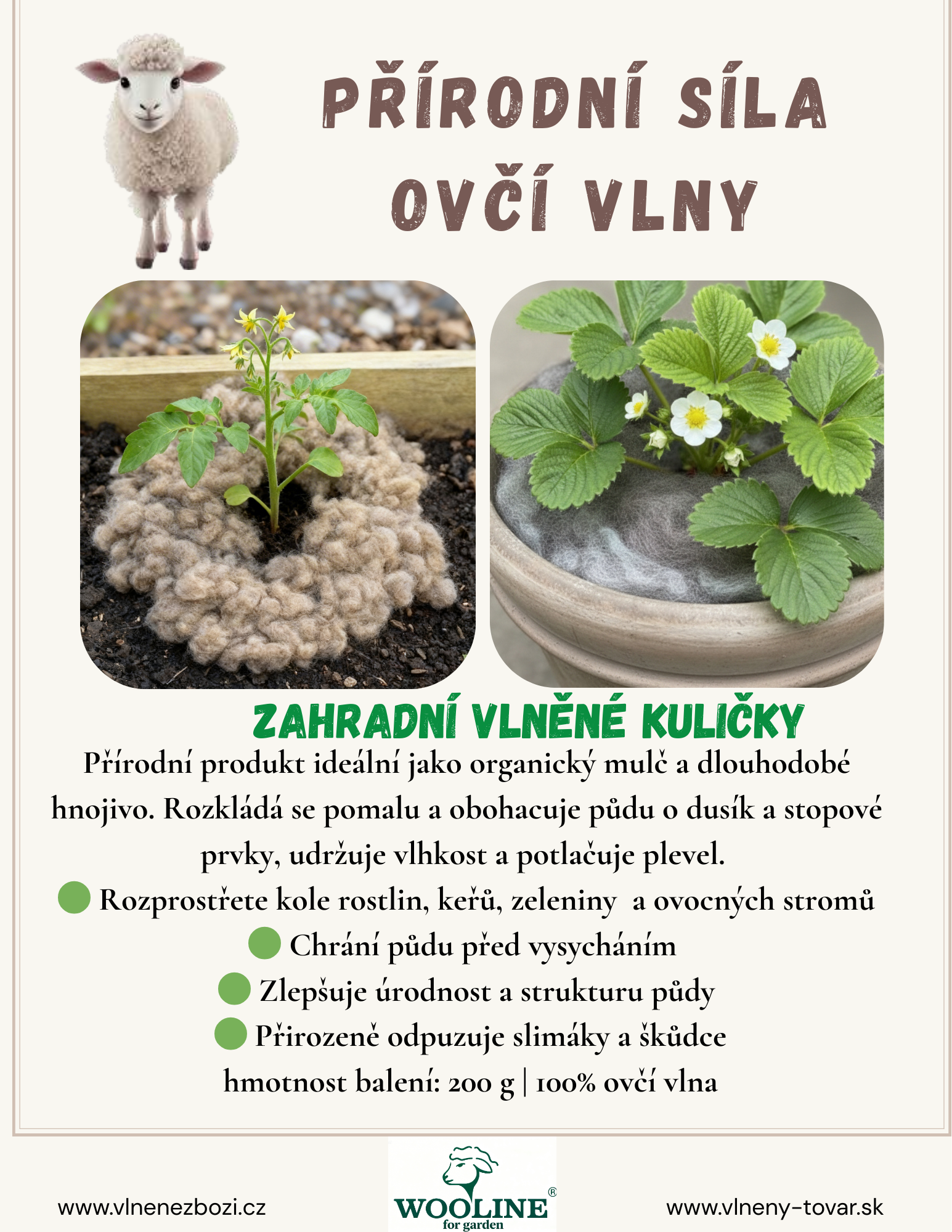 Neupravená ovčí vlna má díky svým chemickým vlastnostem schopnost odpuzovat slimáky a hlemýždě.