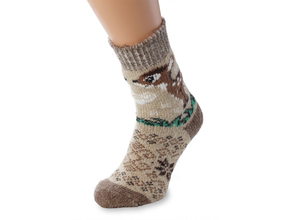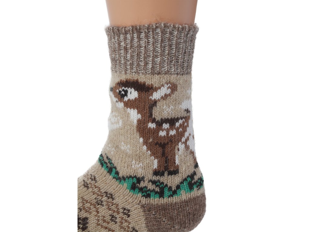 Vlněné ponožky s motivem rozkošného Bambiho jsou strojově pletené ze 100% ovčí vlny. Ponožky mají univerzální velikost. Díky použitému materiálu se ponožka přizpůsobí velikosti chodidla.