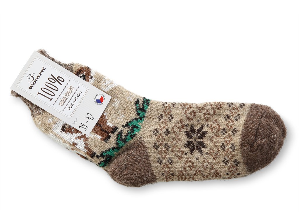 Materiál: 100% Evropské Merino, Určeno pro: dámy i pány Velikost: 36-38, 39-42, Barva: hnědý základ s tmavě hnědým motivem, motiv Bambiho ve světle hnědé barvě