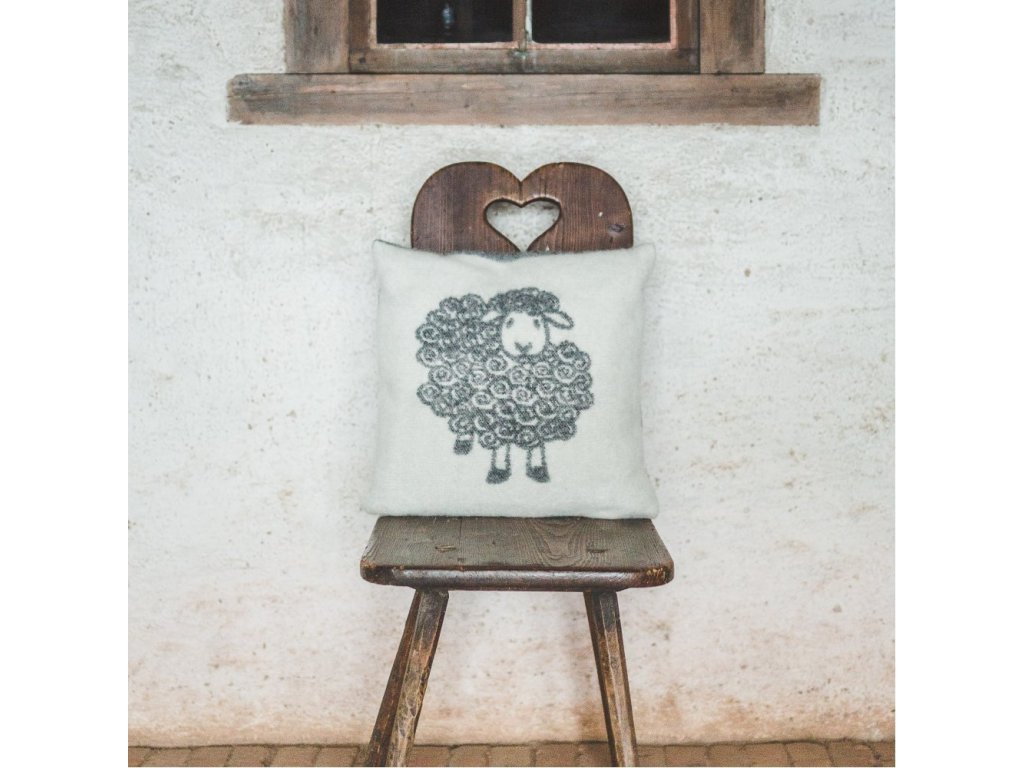Vlněný polštář s motivem šedé ovečky
