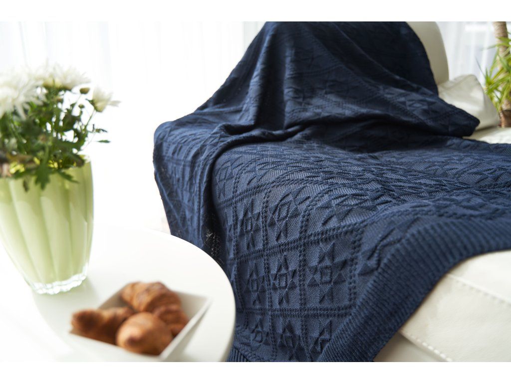 Vlněný přehoz v tmavě modré barvě Navy Blue je inspirován tradičním designem severských ostrovů. Vlněný přehoz Rosaa je velice hebký na omak a zároveň komfortně hřejivý. Hřejivý přehoz má komfortní rozměr 140 x 160 cm. Díky luxusnímu rozměru se pod deku mohou zachumlat až dvě osoby. Pro výrobu této přikrývky bylo použito té nejjemnější vlny známé jako panenská jehněčí vlna. Rub i líc má totožnou barvu.